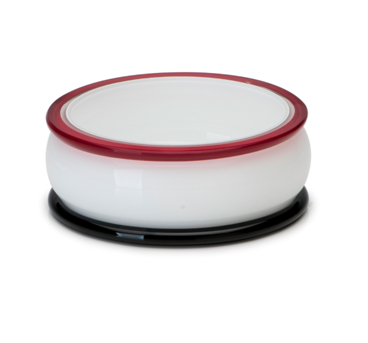 Blown glass, red and white , with catalogue and signed certificate. Sottsass Scrap Book, p. 97
